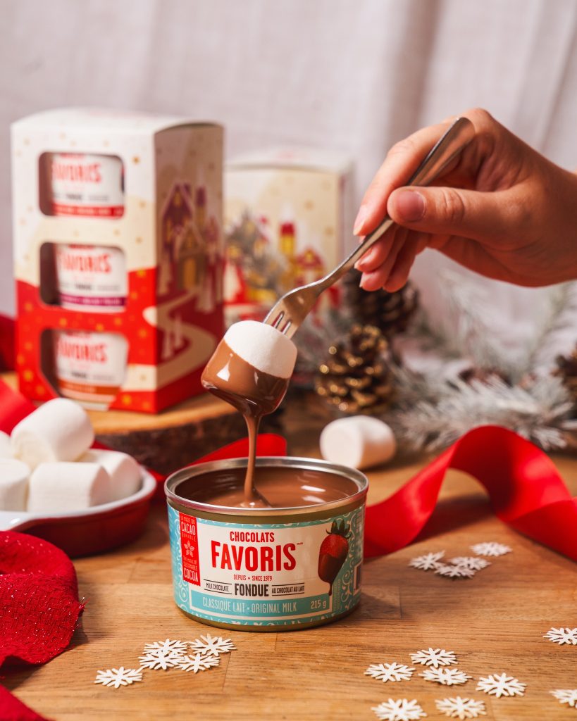 Un moment autour de la table en famille ou en tête à tête, des fruits, des pâtisseries et quelques guimauves à tremper dans l’une des 12 fondues de Chocolats Favoris. Le tout à partir de 8,99 $.