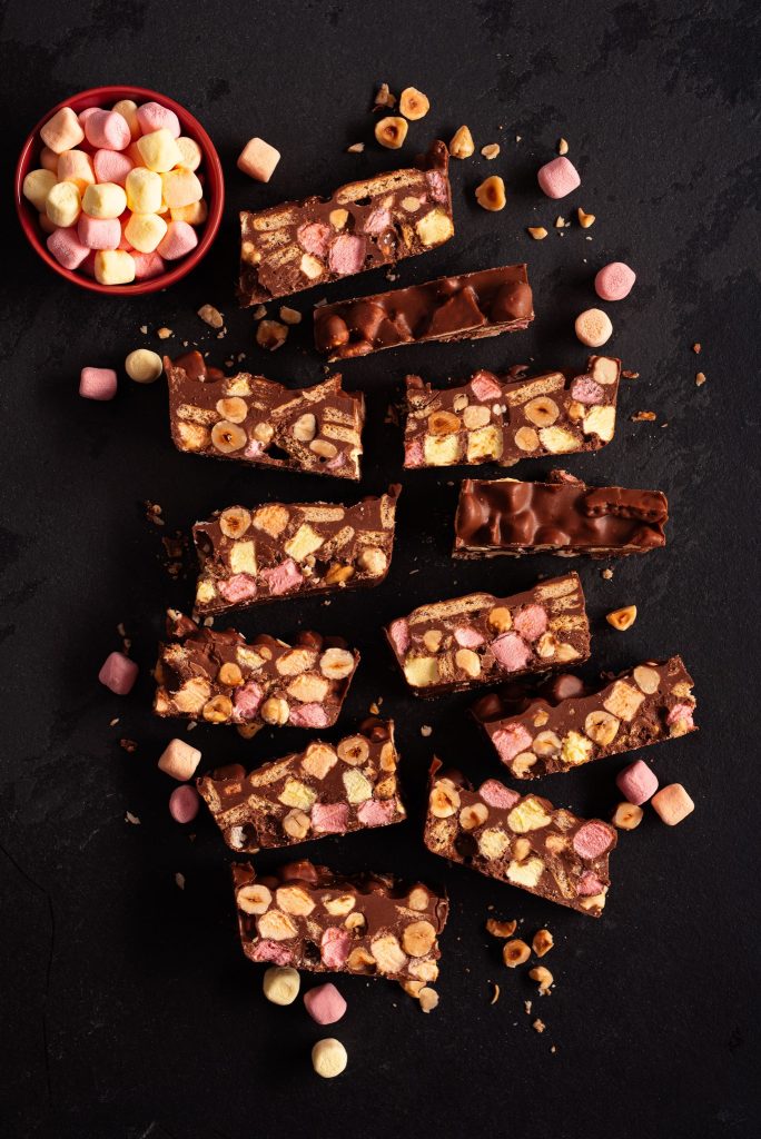 Sur le site de Chocolats Favoris, vous trouverez plusieurs recettes à réaliser ! Voici LA recette que nous vous avons sélectionnée pour vous aujourd’hui : BARRES « ROCKY ROAD » À LA GUIMAUVE. Un vrai délice à partager qui demande très peu de préparation et d’ingrédients.